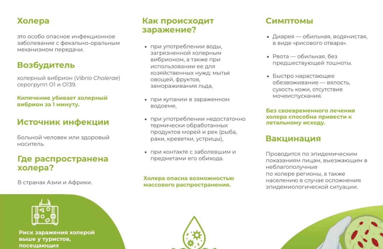 В соответствии с запросом Управления Роспотребнадзора по Пермскому краю, письмом Министерства здравоохранения Пермского края от 26.03.2026 г. № 34-01-13-1563-исх «О предоставлении информации по вопросам профилактики холеры» прошу оказать содействие в размещении информационных материалов о мерах профилактики холеры путем размещения на официальных сайтах, в социальных сетях, в чатах, а также других информационных ресурсах.
